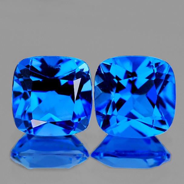 10.00 mm Cushion 2pcs Natural Top Intense Swiss Blue Topaz [Flawless-VVS]