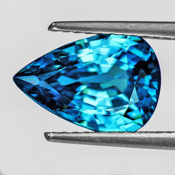 11x7 mm Pear 3.08cts AAA Luster Natural Intense Blue Zircon [Flawless-VVS]