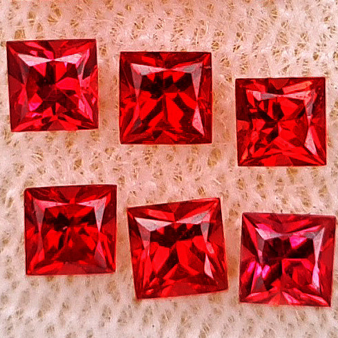 3.00 mm Square Princess 6 pcs Superb Luster Natural Intense Orange Red Sapphire [Flawless-VVS]-Top Grade