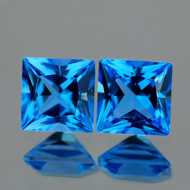 6.00 mm Square Princess 2 pieces AAA Fire Luster Natural Brilliant Swiss Blue Topaz [Flawless-VVS] Top Grade Top Luster