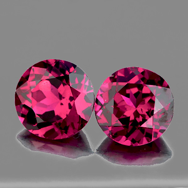 6.70 mm Round 2pcs AAA Luster Natural Intense Raspberry Pink Rhodolite Garnet [Flawless-VVS]-Top Grade