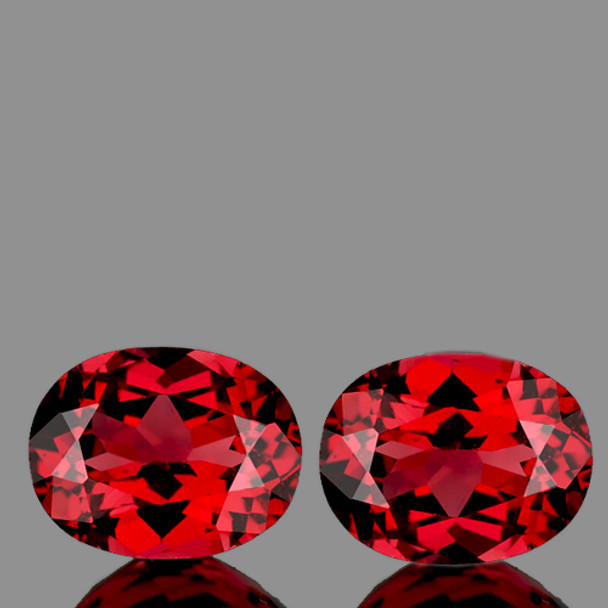 7.7x5.7 mm Oval 2pcs{2.86cts} Superb Luster Natural Intense Red Rhodolite Garnet [Flawless-VVS]-Top Grade