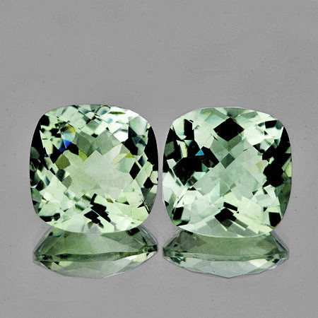 8.00 mm Cushion Checker 2pcs AAA Luster Natural Sparkling Green Amethyst 'Prasiolite' [Flawless-VVS]