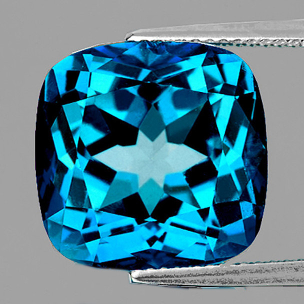 8.80 mm Cushion {3.72cts} AAA Fire Luster Natural Intense Bright London Blue Topaz [Flawless-VVS]