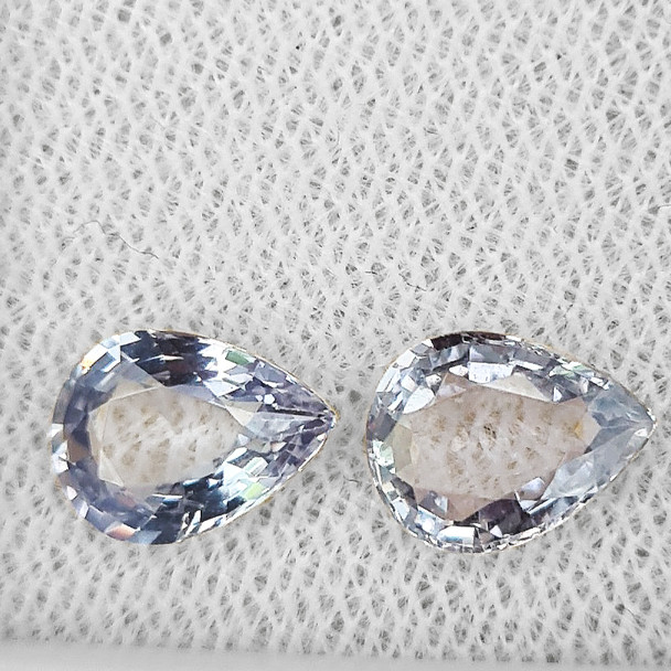 - 8x6 mm Pear 2pcs {2.42cts} Fire Luster Natural Brilliant White Sapphire [Flawless-VVS]
