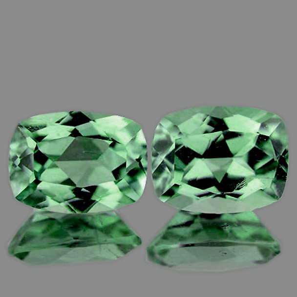 - 9x7 mm Cushion 2pcs AAA Fire Luster Natural Mint Green Apatite [Flawless-VVS]