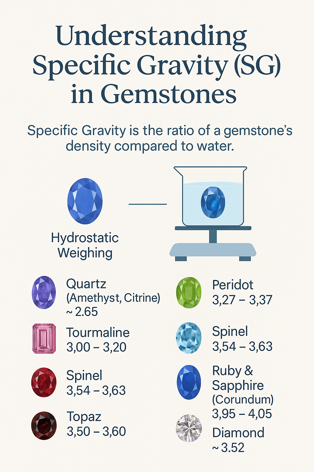 When it comes to identifying gemstones, beauty alone isn’t enough. Gemologists rely on physical properties to distinguish one stone from another, and one of the most important is Specific Gravity (SG).